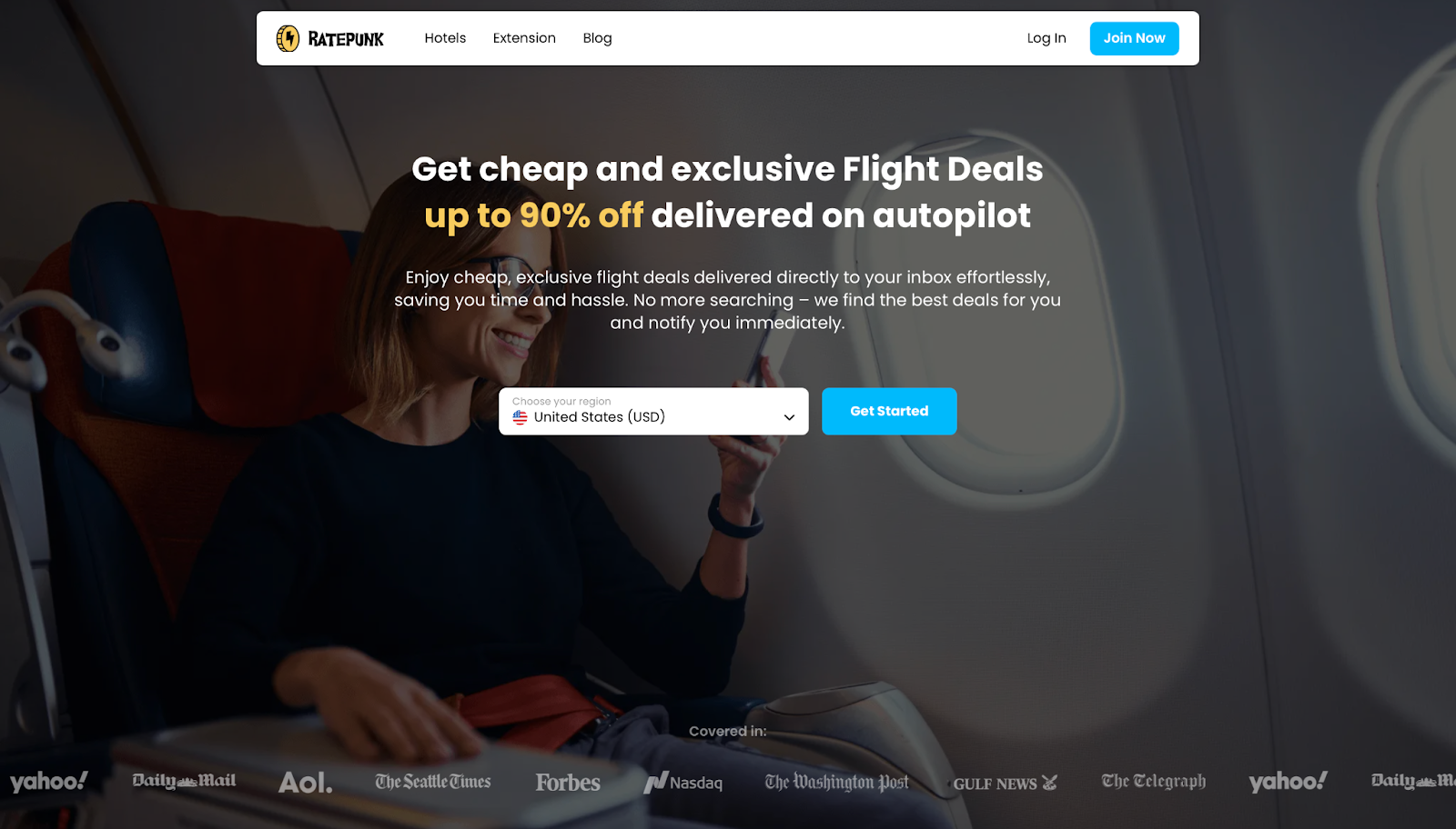 - RatePunk’s flagship product, RatePunk Flights, delivers personalized flight deals directly to your inbox, with savings of up to 90% on tickets. Users select their preferred departure airports, and RatePunk’s AI-powered system scans the internet 24/7 to uncover hidden fares and exclusive offers not always found on platforms like Google Flights or Skyscanner.