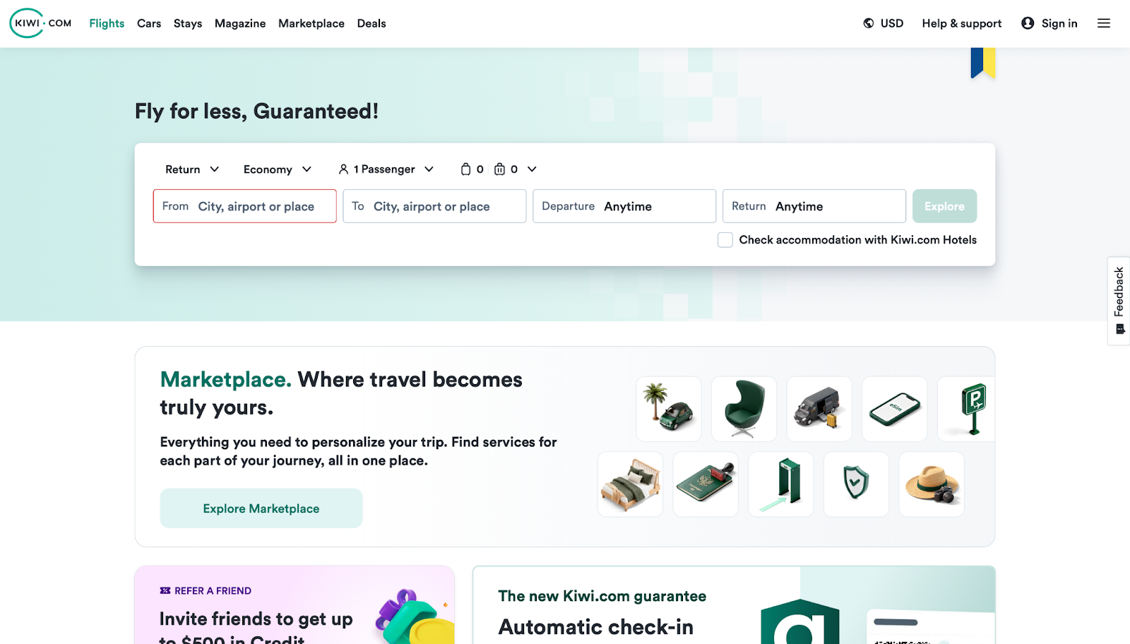 Kiwi.com innovates in flight hunting from Prague by creating unique itineraries that combine tickets from unrelated airlines, often yielding lower fares for paths to Asia or the Americas. Its virtual interlining guarantees protection if connections fail, handling rebookings automatically. The nomad tool optimizes multi-destination trips by finding the cheapest sequence.